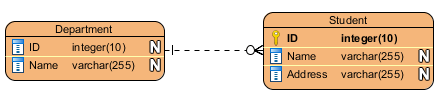 Hubungan satu-ke-satu sebagian besar digunakan untuk membagi entitas menjadi dua untuk memberikan informasi secara ringkas dan membuatnya lebih mudah dipahami. Gambar di bawah ini menunjukkan contoh hubungan satu-ke-satu.
