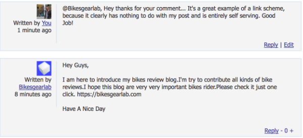 Banyak pemasar cenderung menyalahgunakan bagian komentar situs dengan meninggalkan tautan mereka. Komentar yang tidak menambah nilai diskusi ini sering kali mudah diperhatikan dan dikenai sanksi.